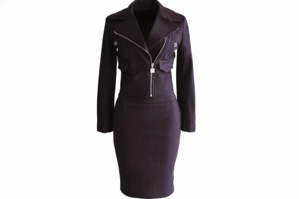 Signature Hardware: High-quality metallic zippers and snap buttons provide a refined finish, emphasizing the suit’s structured and luxurious construction.